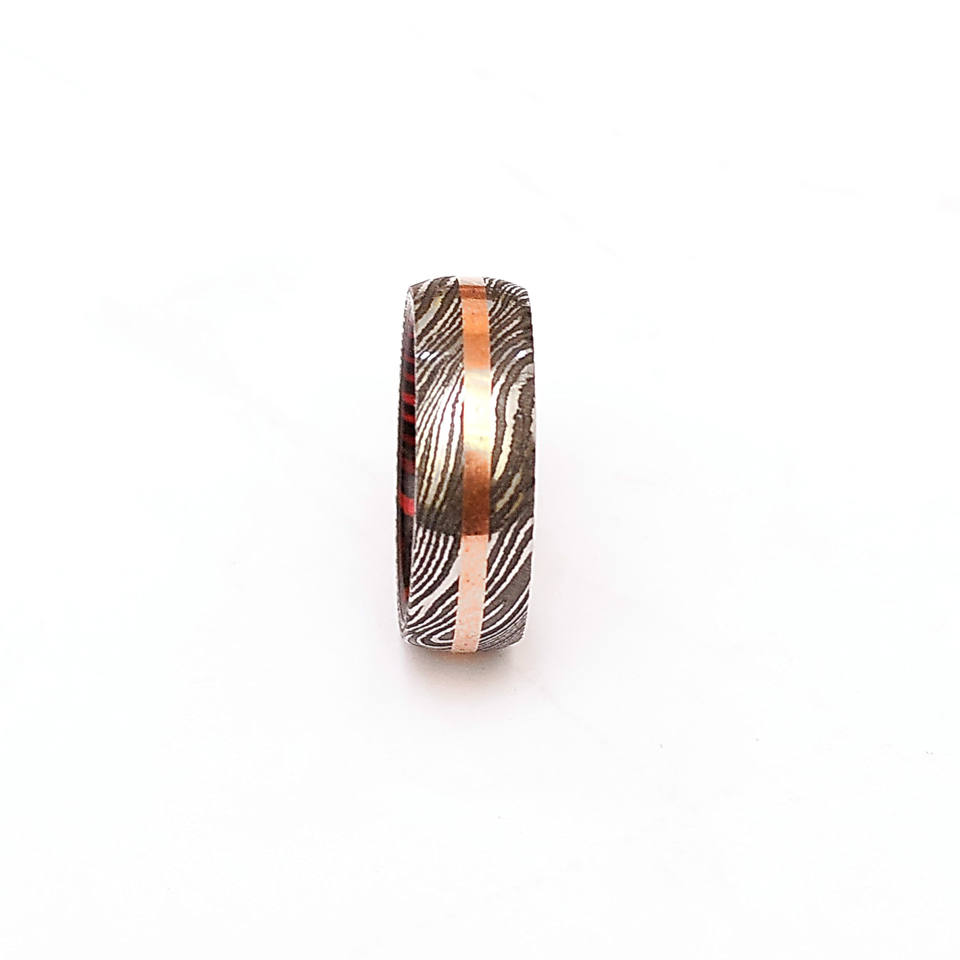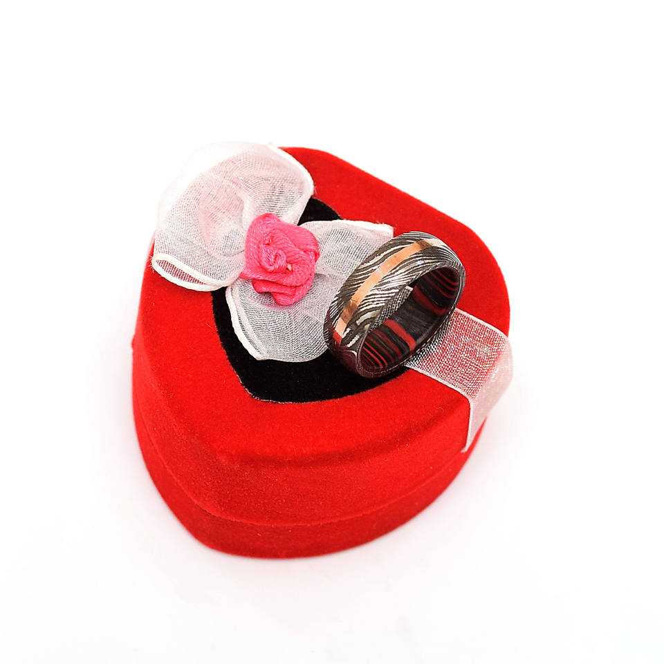 แหวนเหล็กดามัสกัสทำด้วยมือพร้อมกล่องของขวัญรูปหัวใจที่สวยงามชุดของขวัญแต่งงานแบบกำหนดเองสำหรับเป็นของขวัญวันครบรอบ