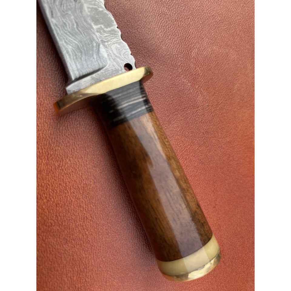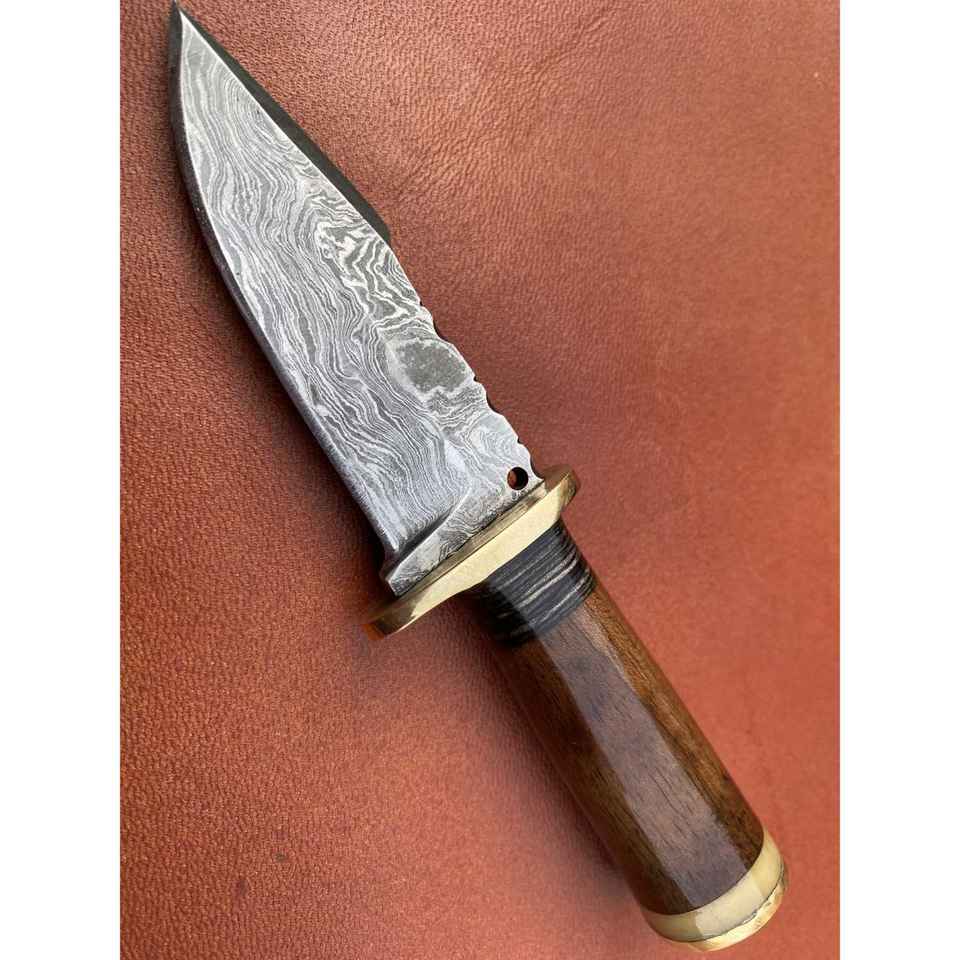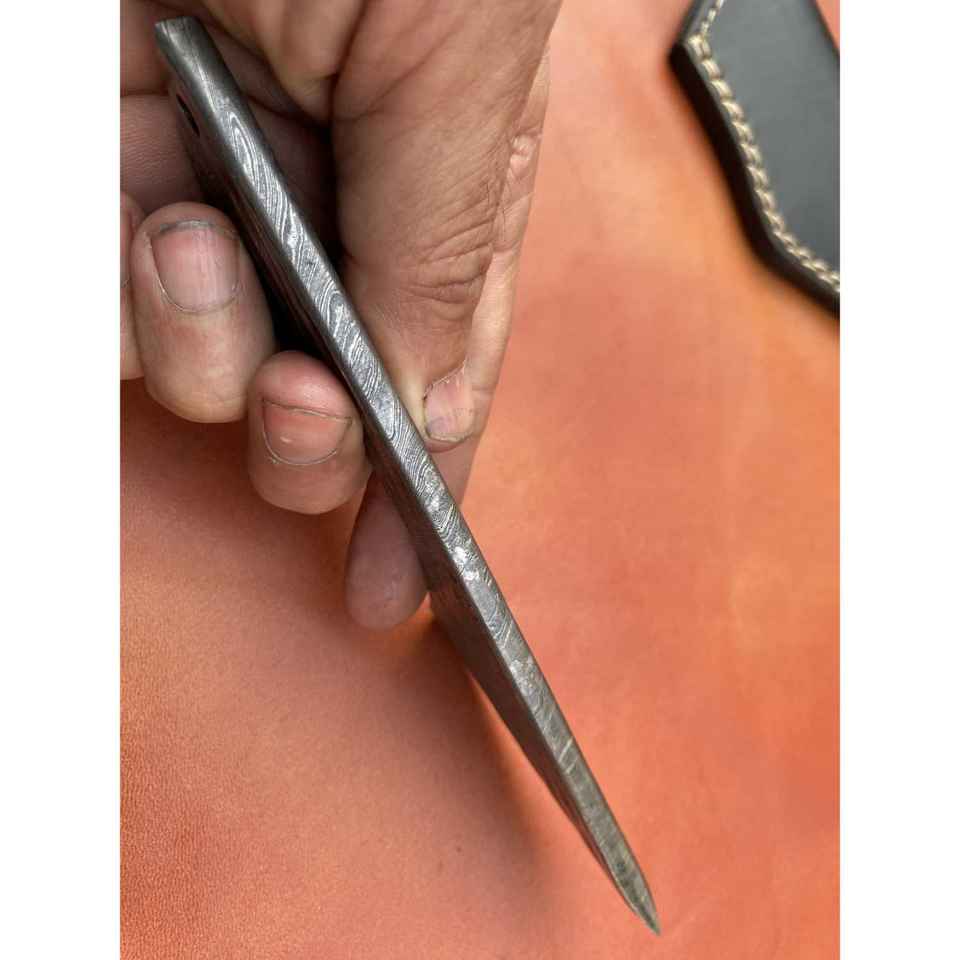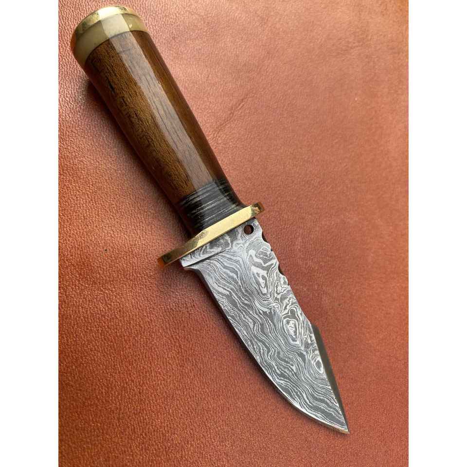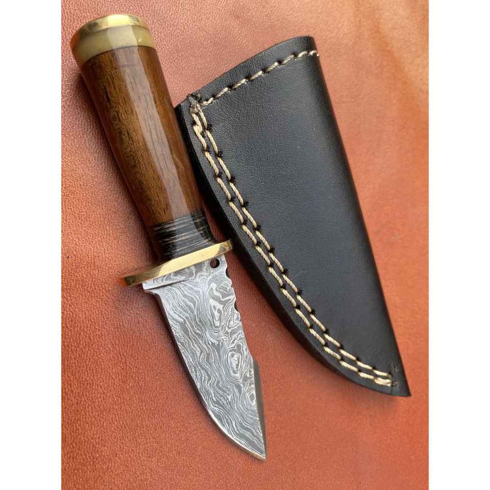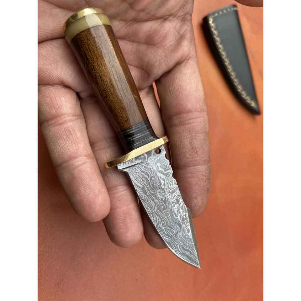 มีดสกินเนอร์เหล็กดามัสกัสทำมือ ด้ามจับตามหลักสรีรศาสตร์ เหมาะสำหรับตั้งแคมป์กลางแจ้ง พร้อมปลอกหนังทนทาน