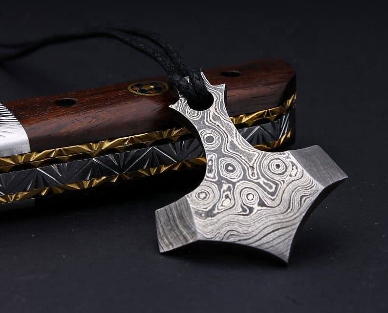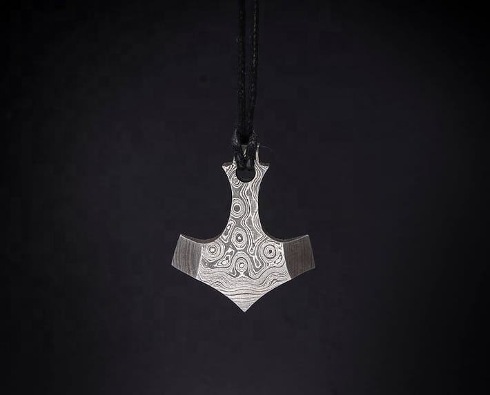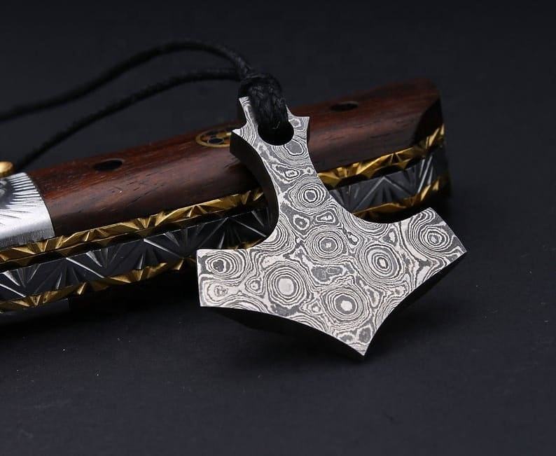 สร้อยคอจี้เหล็กดามัสกัสทำด้วยมือล็อกเกตน่ารักแท้ที่สวยงามพร้อมเครื่องรางไวกิ้งสไตล์หรูหราเครื่องประดับแฟชั่น