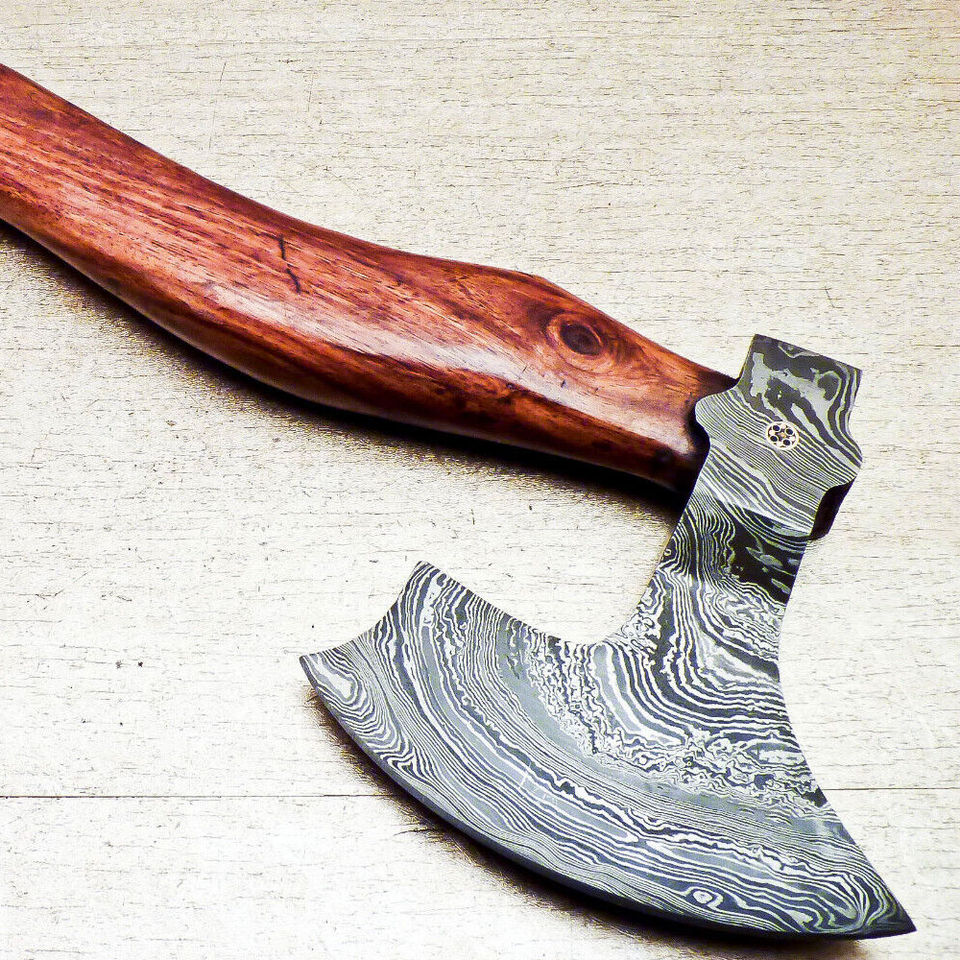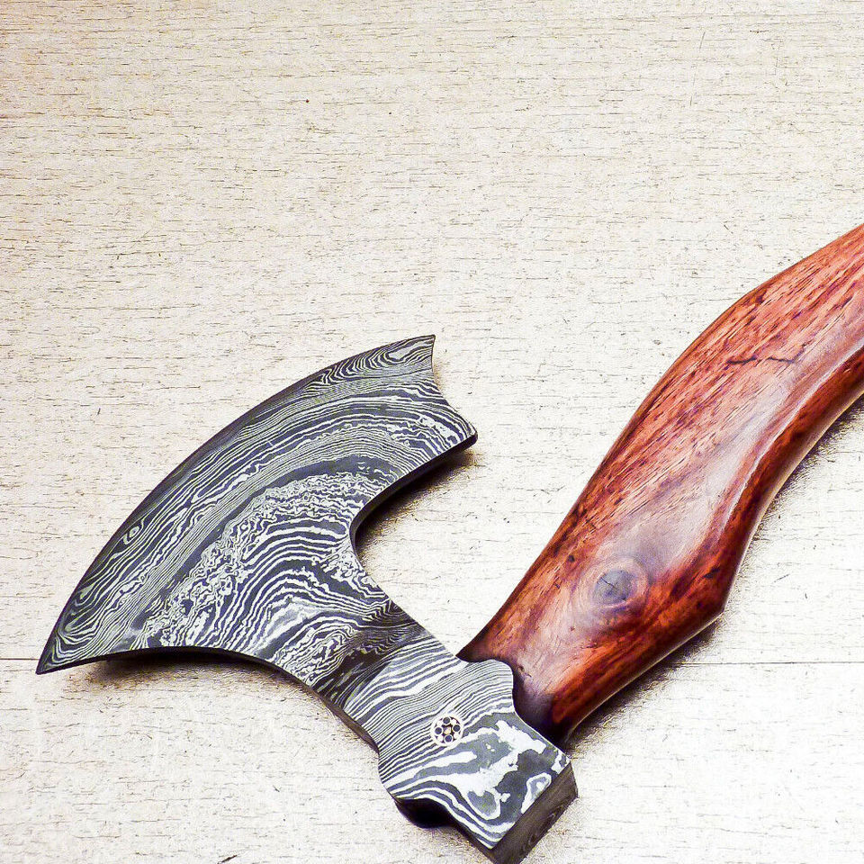 ขวานโทมาฮอว์กเหล็กดามัสกัสทำมือ ด้ามไม้โรสวูด ขวานเอาตัวรอดแบบสั่งทำพิเศษ ขวานเกรดอุตสาหกรรม ขายส่ง