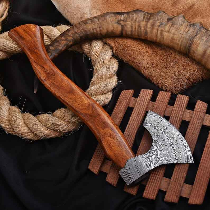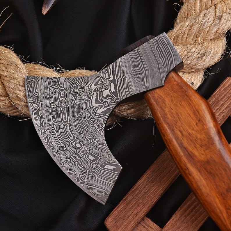 ขวานเหล็กดามัสกัสทำมือสำหรับแคมป์ปิ้งและสะสม ขายส่ง ขวานเหล็กดามัสกัสเกรดอุตสาหกรรม สไตล์ไวกิ้ง