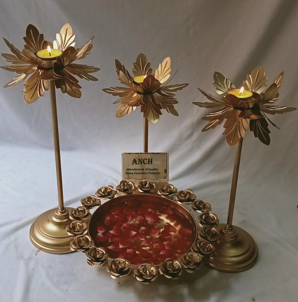 แฮนด์เมดตกแต่งชามดอกไม้ดีไซน์ทันสมัยสีทองสําเร็จรูป urli ทองเหลืองหรูหราสําหรับตกแต่งงานปาร์ตี้