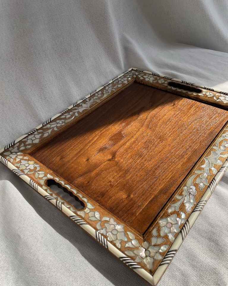 ถาดเสิร์ฟขนมและช็อกโกแลตตกแต่งทำมือ สำหรับงานแต่งงาน รอมฎอน และของขวัญวันอีด ถาดหรูหราฝังมุก