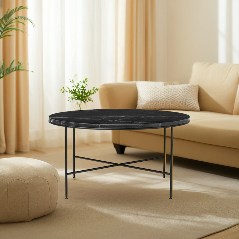โต๊ะกลางหัตถกรรมดีไซน์ทันสมัยโต๊ะกาแฟหินอ่อนทรงกลมหรูหรามีสไตล์พร้อมฐานโลหะสำหรับบ้านห้องนั่งเล่น