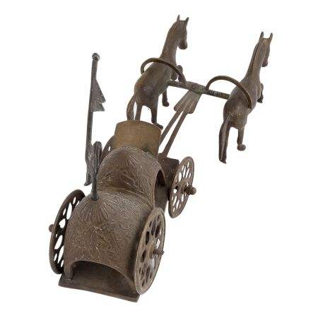 งานประติมากรรมรูปม้าสองตัวบนรถม้าโบราณอินเดีย ทำด้วยมือ สำหรับตกแต่งบ้าน ขนาด 19 x 10 ซม. รุ่น SNS-649