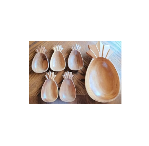 ถาดวางจานที่ได้รับการออกแบบรูปสับปะรดทำด้วยมือไม้มะม่วงสีน้ำตาลสำหรับตกแต่งบ้านและจัดแสดง