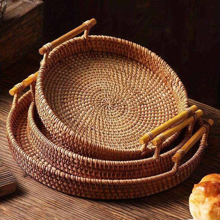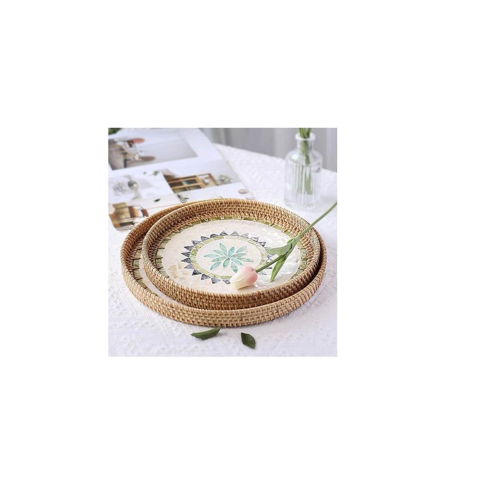 ถาดเสิร์ฟอาหารปอกระเจาหวายสำหรับตกแต่งทำด้วยมือพร้อมชุดตกแต่งกระดูก3ชิ้นถาดเสิร์ฟอาหารรูปทรงโค้งมน