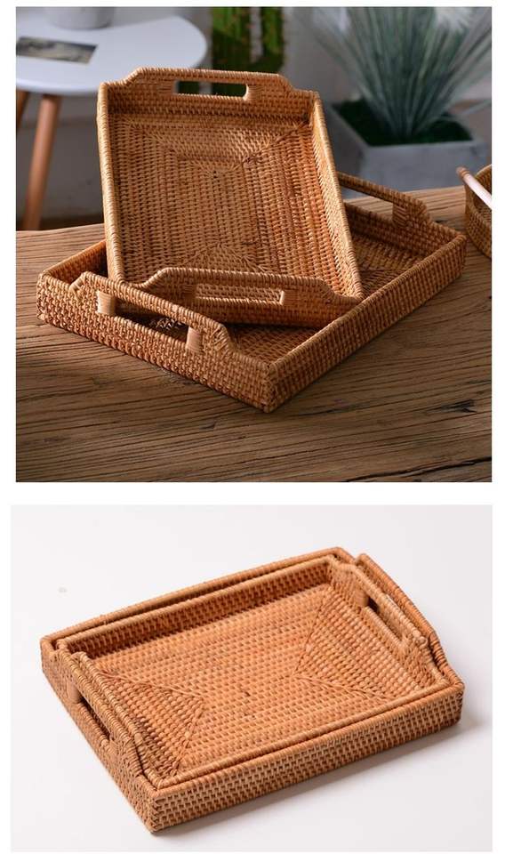 ถาดเสิร์ฟอาหารปอกระเจาหวายสำหรับตกแต่งทำด้วยมือพร้อมชุดตกแต่งกระดูก3ชิ้นถาดเสิร์ฟอาหารรูปทรงโค้งมน