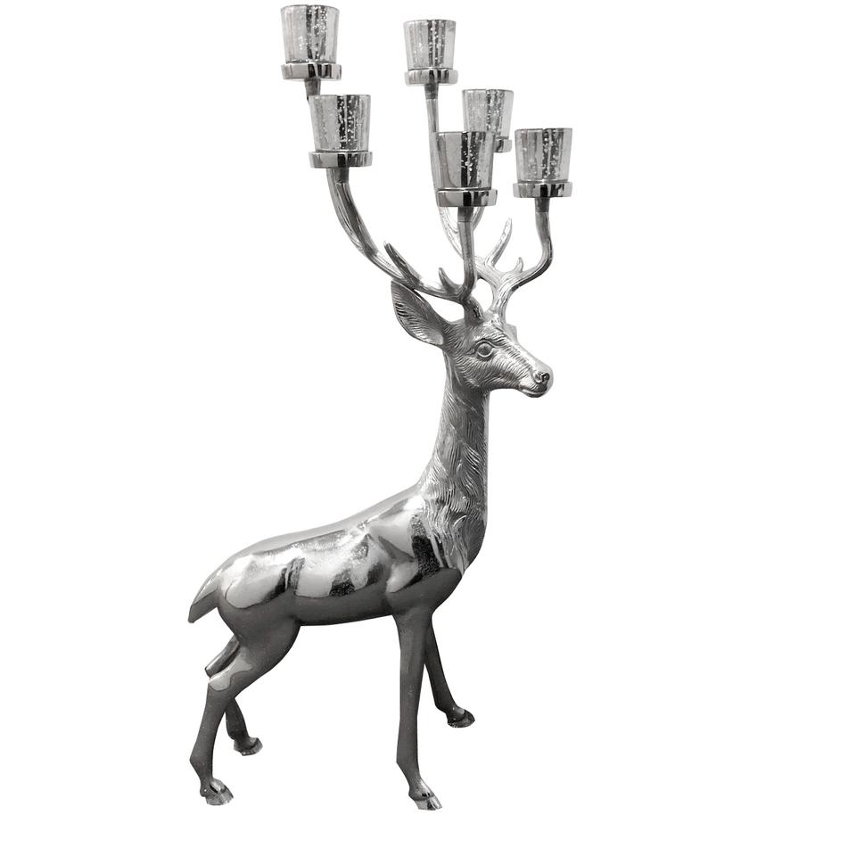 เชิงเทียนทำมือจากเขากวาง รูปทรงกวาง สีเงินอะลูมิเนียม ปรับแต่งได้ สวยงาม เหมาะสำหรับตกแต่งโต๊ะกลาง