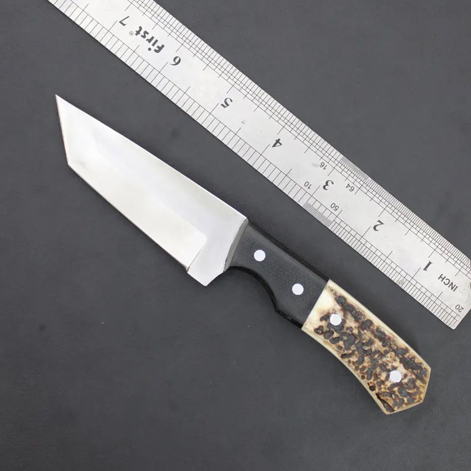 มีดล่าสัตว์ทำมือจากเขาสัตว์ แบบฟูลแทง พร้อมปลอกหนัง