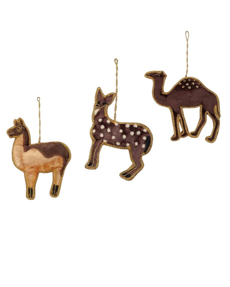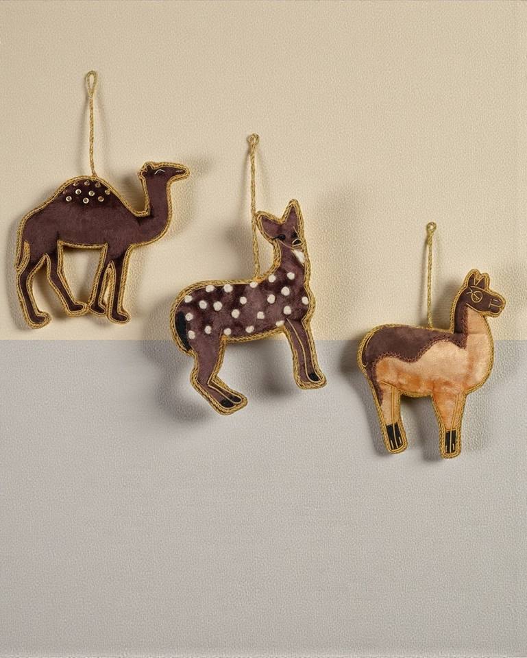 ชุดแขวนผนังลายสัตว์ทะเลทรายทำมือ – ลายปักอูฐ กวาง และลามะ สำหรับตกแต่งผนังและต้นไม้