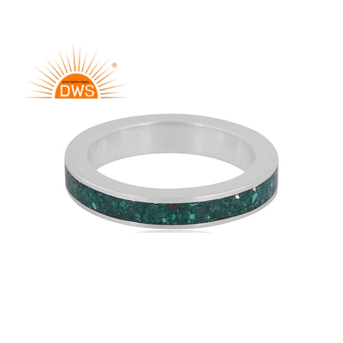 แหวนอัญมณีมาลาไคต์ธรรมชาติผลิตจากเงินแท้ดีไซน์ทำด้วยมือ