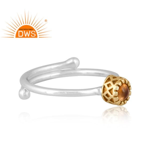 แหวนพลอยซิทรีนธรรมชาติทำด้วยมือเงินแท้จากผู้ผลิตเครื่องประดับแบบวางซ้อนกันได้