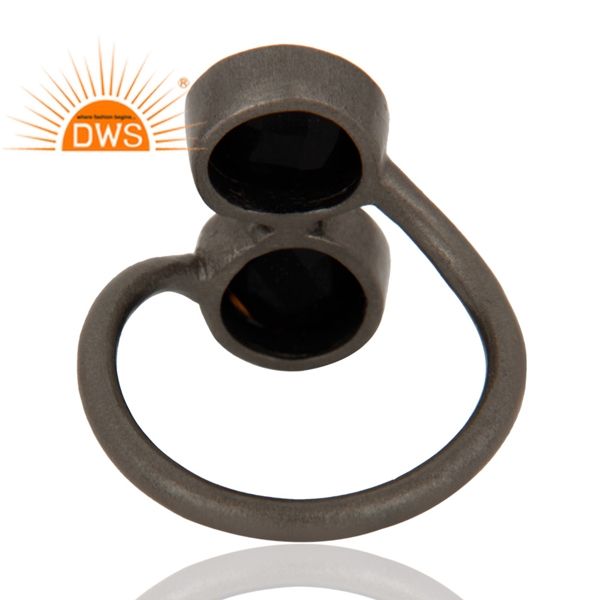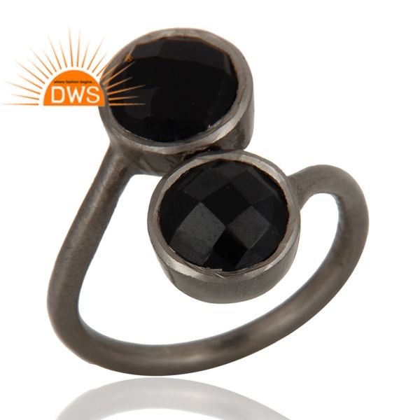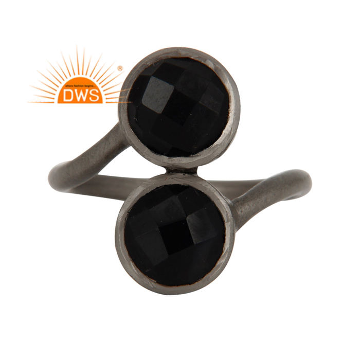 แหวนอัญมณีทรงกลมพลอยสีดำเจียระไนเป็นสีเงินสเตอร์ลิงดีไซน์ทำด้วยมือสำหรับผู้หญิงเป็นของขวัญ