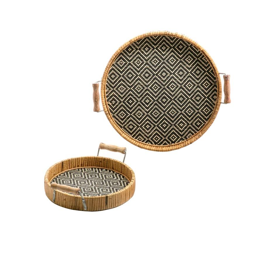 Handmade Design Rounded Shape Serving Tray With Handle Set of 2 Custom Finishing Tableware Catering Serving Usage Items