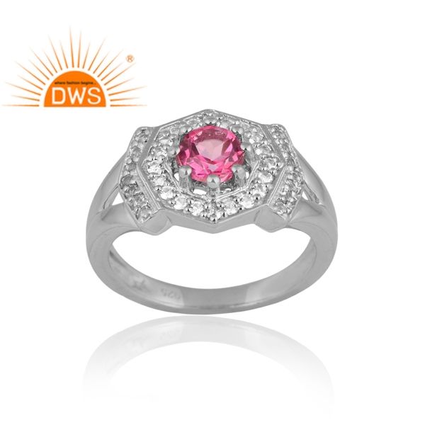 แหวนพลอยบุษราคัมชุบเงินแพลเลเดียมสีชมพูและสีขาวดีไซน์ทำด้วยมือสำหรับผู้หญิงเครื่องประดับที่กำหนดเองสำหรับผู้หญิงของขวัญสำหรับผู้หญิง