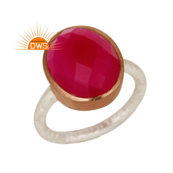 แหวนวางซ้อนกันได้ทำด้วยมือเงินแท้สีชมพูพลอยคาลซิโดนี
