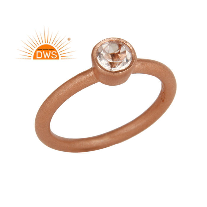 แหวนควอตซ์อัญมณีสีเงินและโรสโกลด์จากธรรมชาติทำด้วยมือเครื่องประดับแบบวางซ้อนกันได้สำหรับผู้หญิงของขวัญสำหรับผู้หญิงสำหรับเธอ