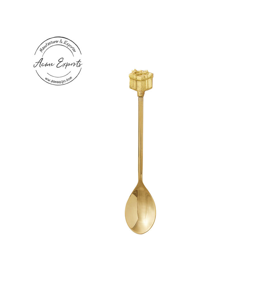 ช้อนชาชุบทองหรูหราพร้อมด้ามจับที่สง่างามสแตนเลสสตีลพรีเมี่ยมดีไซน์ทนทานสำหรับรับประทานอาหารและให้เป็นของขวัญ