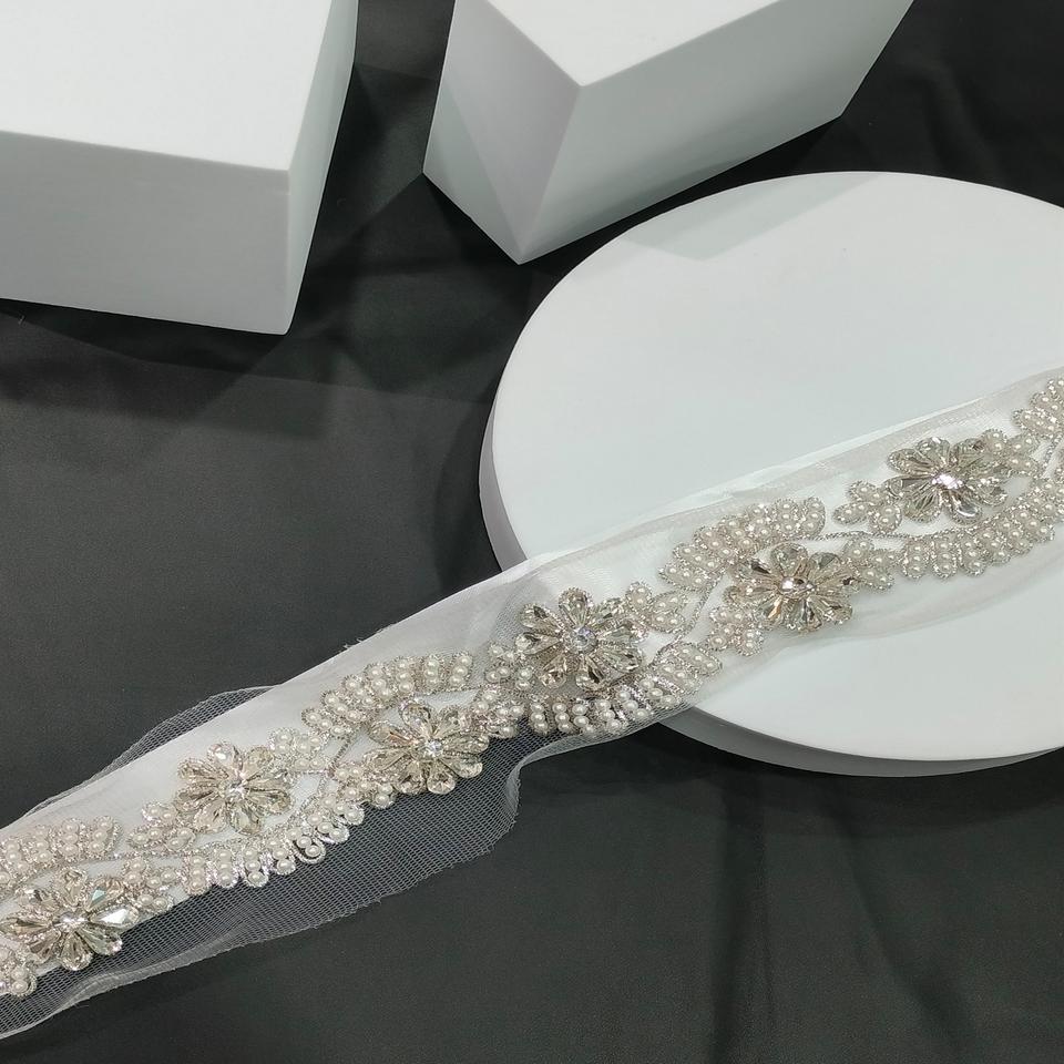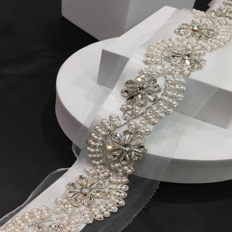 ผ้าลูกไม้ขอบลายดอกไม้และโมติสำหรับแต่งขอบด้วยลูกปัดทำด้วยมือผ้าลูกไม้ตาข่ายนุ่มแบบพรีเมี่ยม