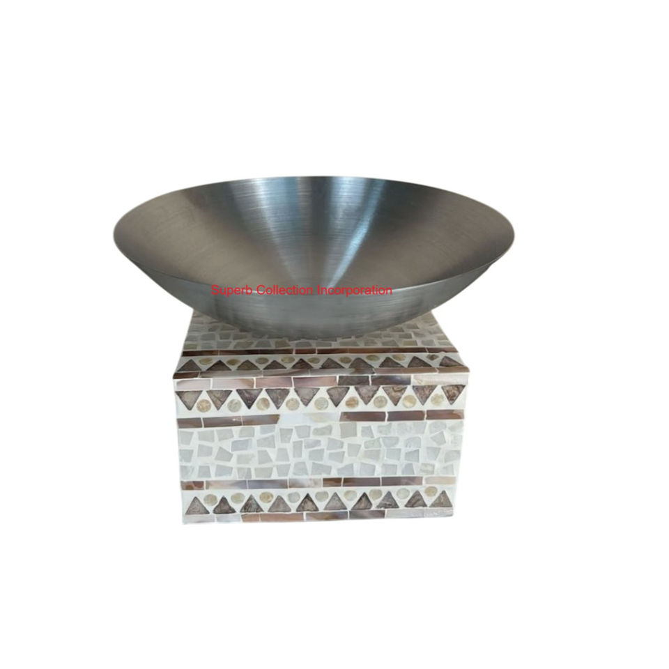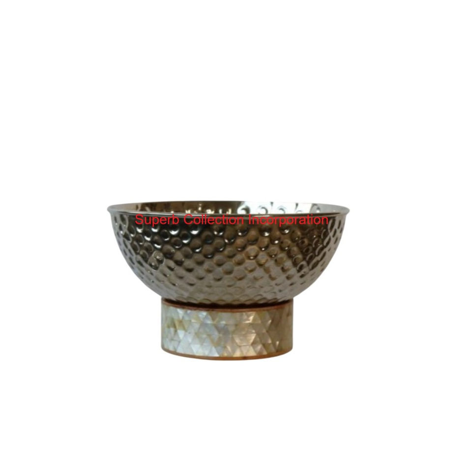 ชามทุบทองเหลืองดีไซน์เนอร์แฮนด์เมดพร้อมแม่ของไข่มุกฝังฐานแท่นสำหรับตกแต่งบ้านและเสิร์ฟชามช็อคโกแลต