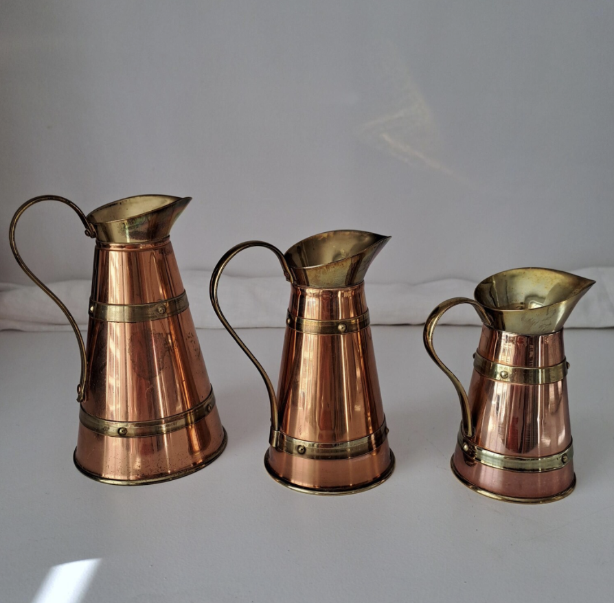 เหยือกทองแดงแกะสลักจากอินเดียทำด้วยมือมีฝาปิดสำหรับน้ำดื่ม