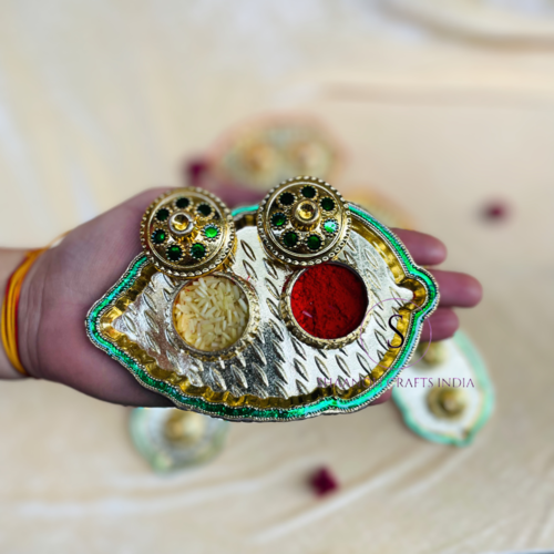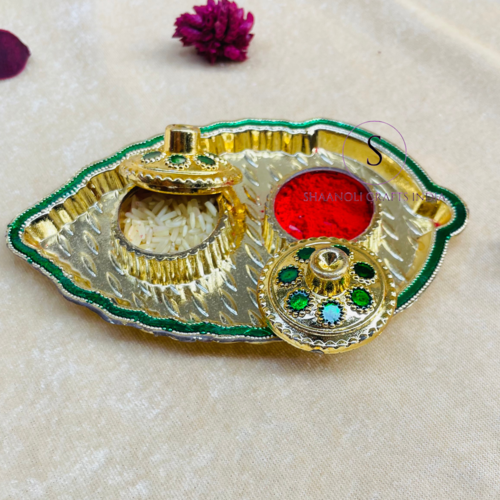 จานลายใบไม้ชุบทองดีไซน์เนอร์งานแฮนด์เมดแผ่น Chawal Thali's มีขอบแตกต่างกันแผ่นเสียงสำหรับคนนิยม