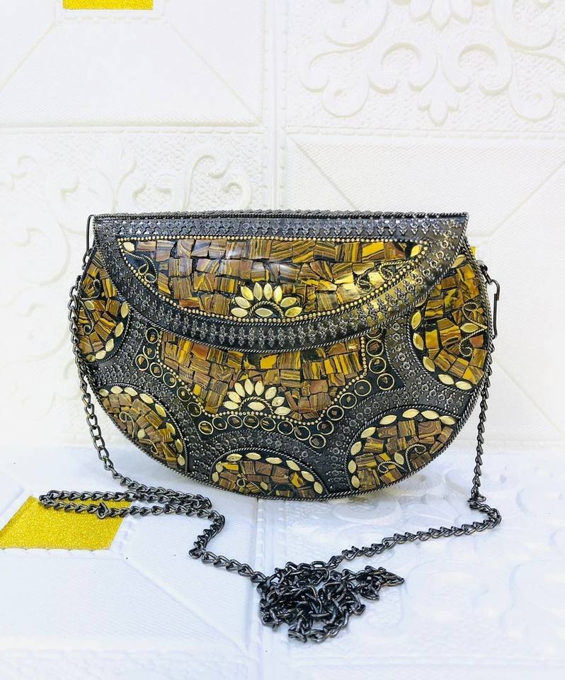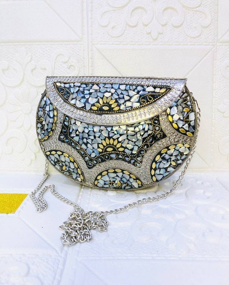 กระเป๋าคลัทช์ปิดฝาปิดทำด้วยมือทำจากโลหะโมเสกกระเป๋าถืองานฝีมืออินเดียแบบลำลองมีสไตล์สำหรับวันวาเลนไทน์