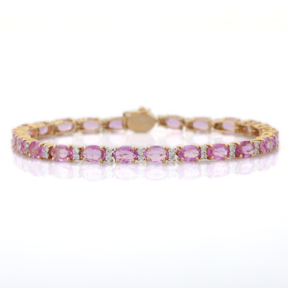 แฮนด์เมดออกแบบธรรมชาติสีชมพูแซฟไฟร์และเพชรพลอยสร้อยข้อมือ14พันแข็งสีเหลืองทองเทนนิสสร้อยข้อมือเครื่องประดับปรับ