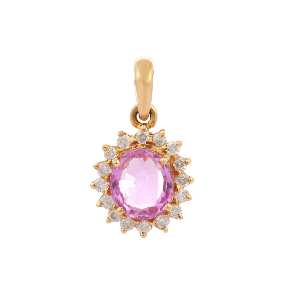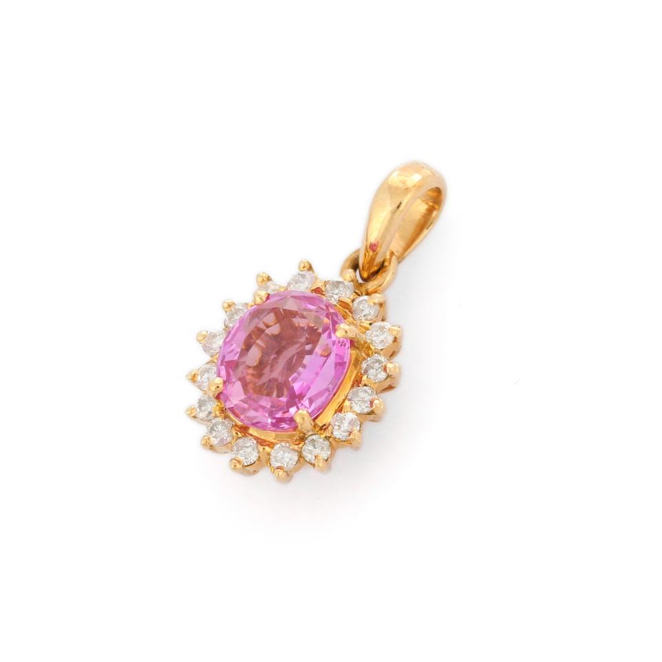 จี้เพชรและพลอยแซฟไฟร์สีชมพูธรรมชาติ ดีไซน์แฮนด์เมด ทองคำแท้ 18K รูปดอกไม้ เครื่องประดับชั้นดีสำหรับผู้หญิง