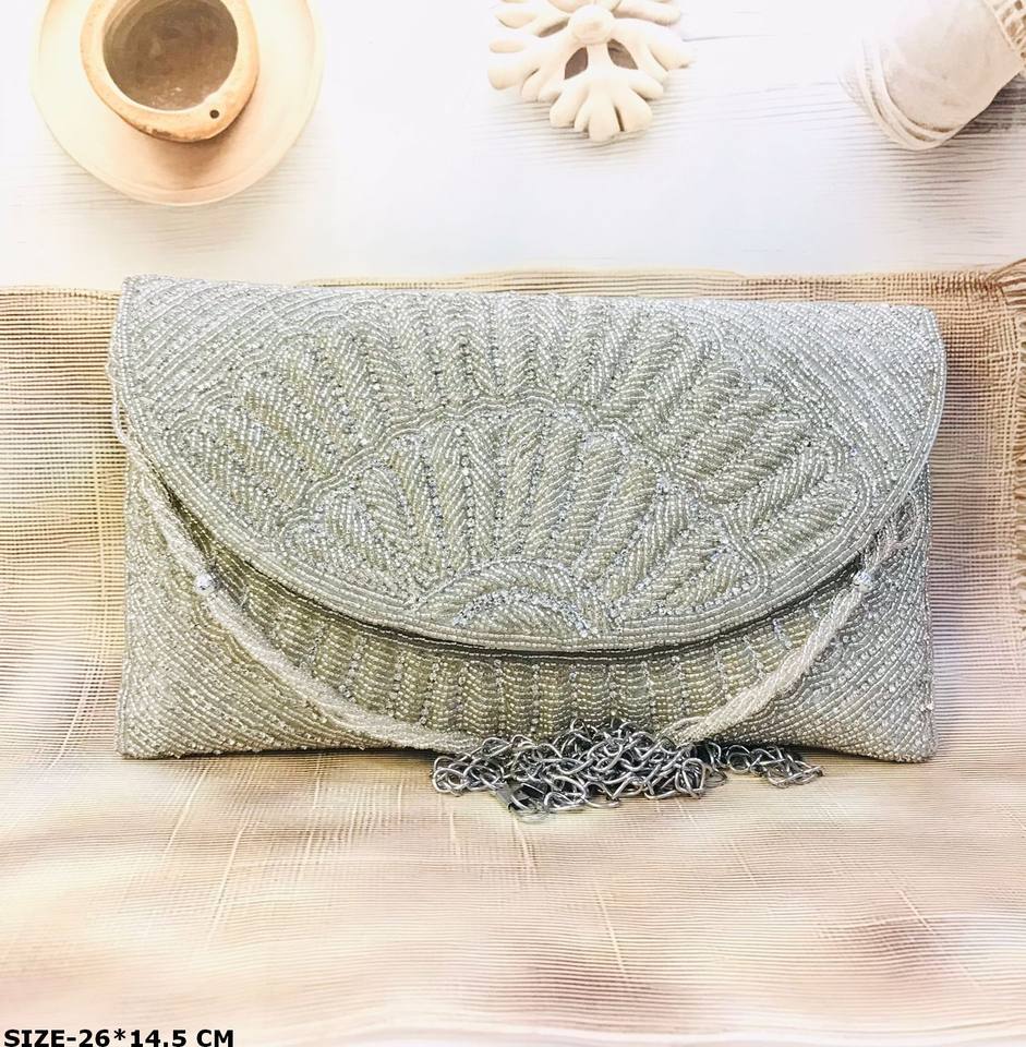 กระเป๋าคลัทช์ออกแบบทำด้วยมือของผู้หญิงมีสไตล์ใหม่ล่าสุดลูกปัดหินแม่เหล็กปิดสำหรับงานเลี้ยงเจ้าสาวตอนเย็นงานแต่งงาน