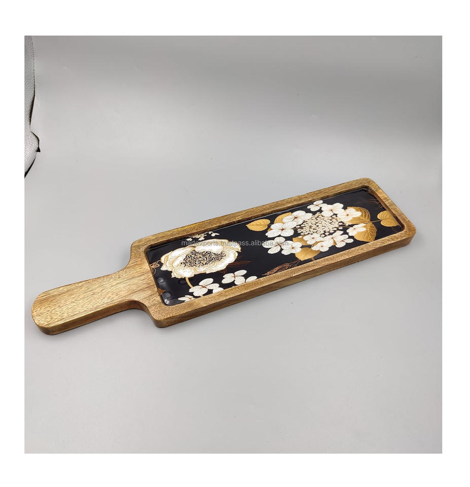 จานไม้ดีไซน์เนอร์ทำด้วยมือถาดเสิร์ฟสีเคลือบเคลือบเงาสุดหรู100ชิ้น