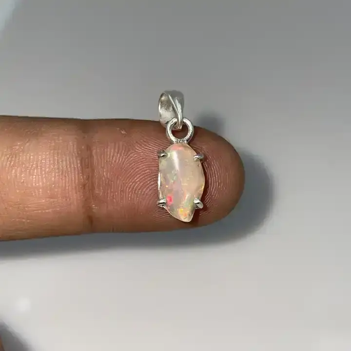 จี้เพชรทำด้วยมือโอปอลเอธิโอเปียธรรมชาติขัดเงาเรียบหลายไฟไม่ซ้ำใครอัญมณีดิบวินเทจของขวัญทันสมัยสำหรับเธอ