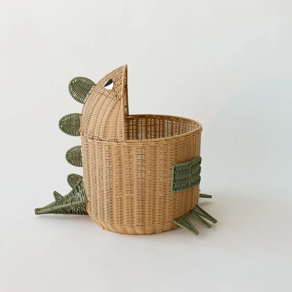 ตะกร้าเก็บของเด็กทรงไดโนเสาร์ทำมือจากหวาย