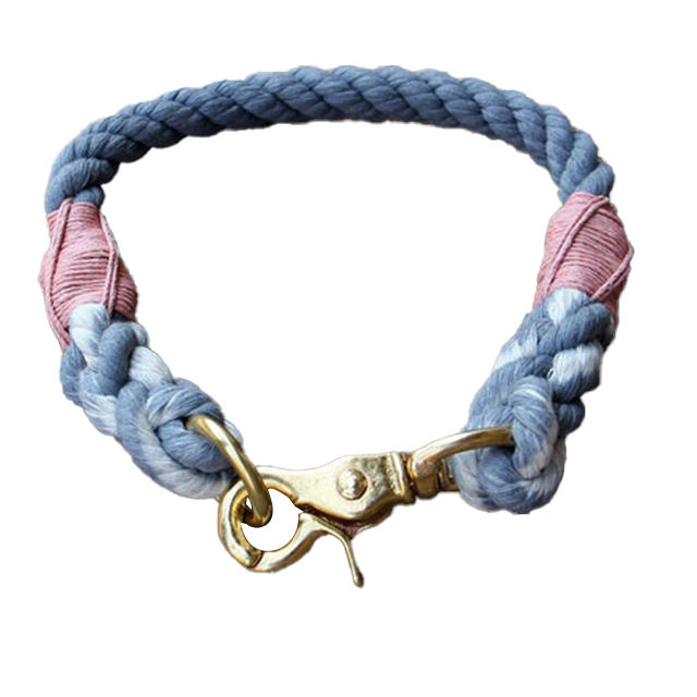 ปลอกคอสุนัขแบบทำด้วยมือคอเสื้อสัตว์เลี้ยงทำจากผ้าฝ้ายถักลายสีทึบมีหมุดสำหรับใส่เดิน