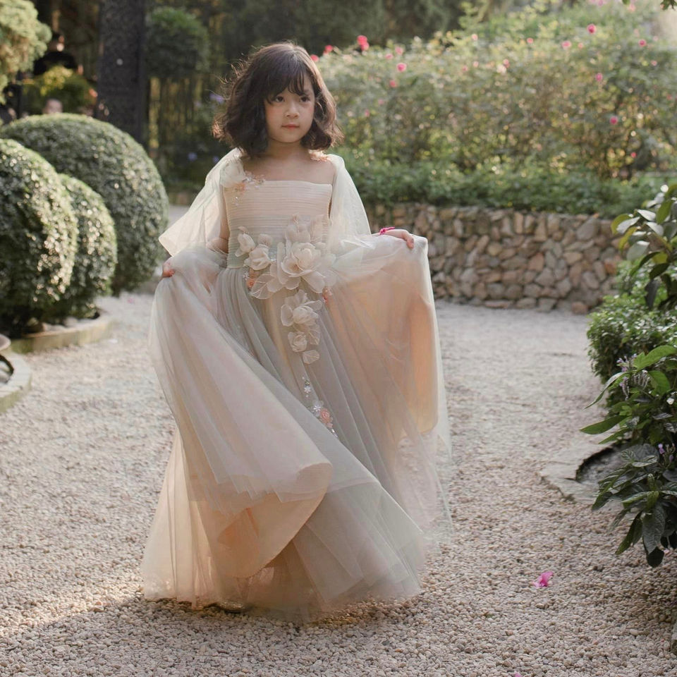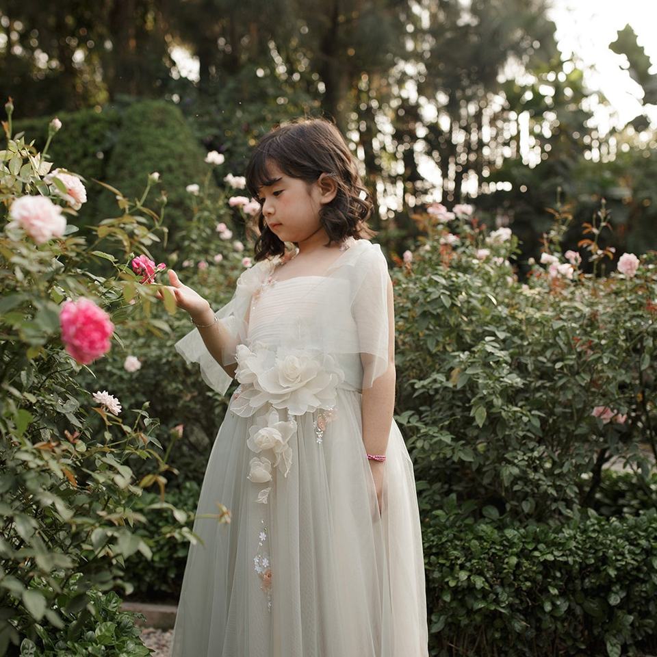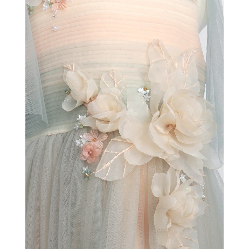 Handmade Dress 3D Peony Flower Assort Color Multi-layer Premium Design Baby Girl Long Tulle Dress Green Sleeveless - Peony Dress