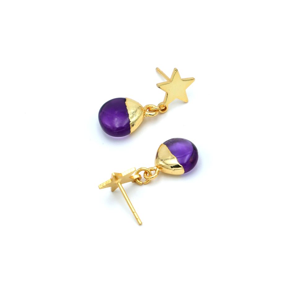 ทำด้วยมือ Dua Amethyst หัวใจต่างหูทองเหลืองชุบทอง18K หรูหราอัญมณีธรรมชาติเครื่องประดับงานแต่งงาน