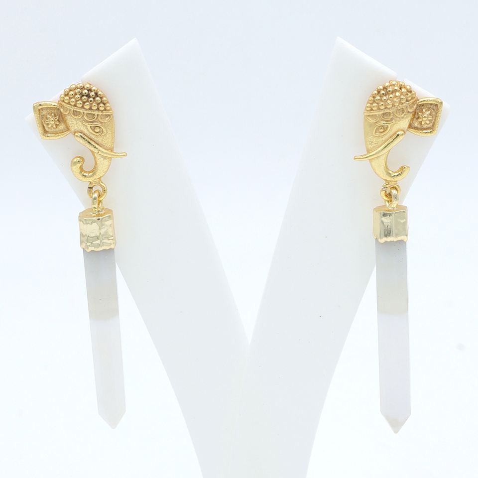 ทำด้วยมือ Dua ลูกไม้อาเกตต่างหูต่างหูทองเหลืองชุบทอง18K เครื่องประดับสำหรับงานแต่งงานที่หรูหราของผู้หญิง