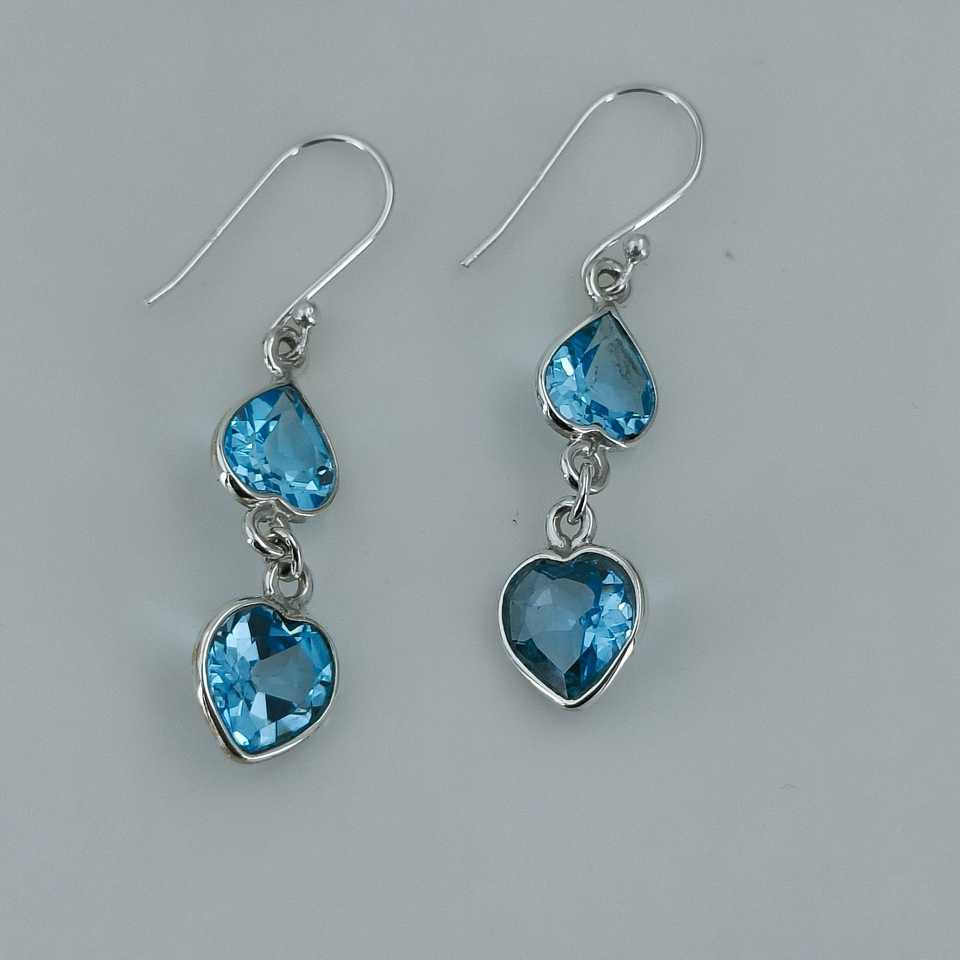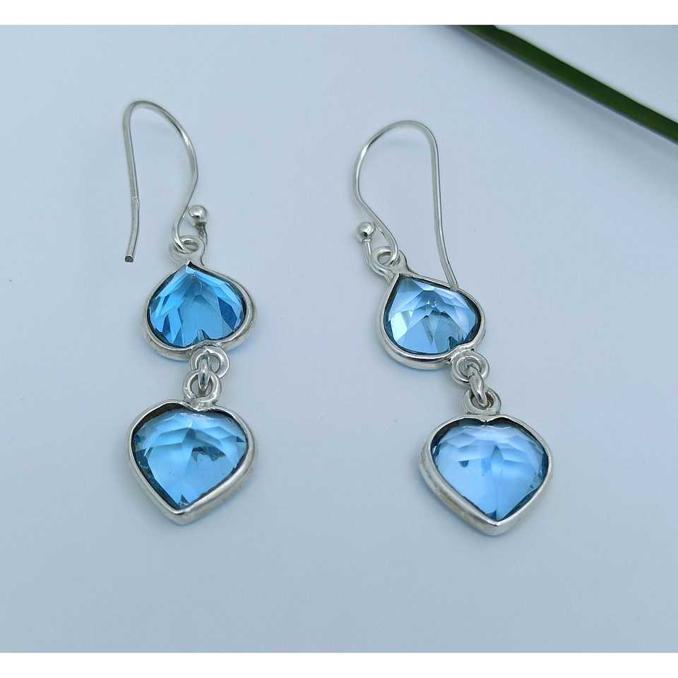 ต่างหูห้อยรูปหัวใจคู่ประดับบลูโทแพซทำมือ พลอยธรรมชาติ เงินแท้ สำหรับวันครบรอบ วันเกิด ต่างหูห้อยสวยหรู