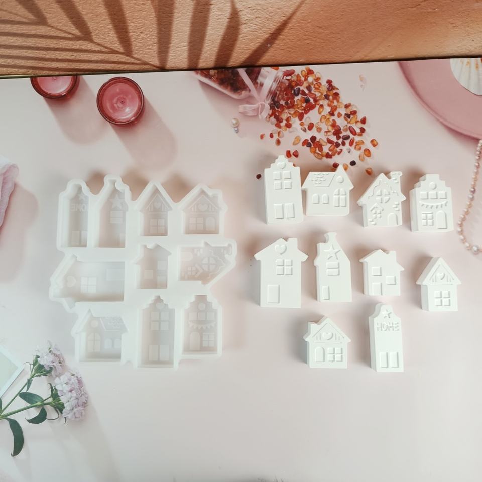 Handmade Eco-Friendly 3D Little House Combination Silicone Fondant Tool Reusable Square Storage Molds S1184 4 Base Support Cake