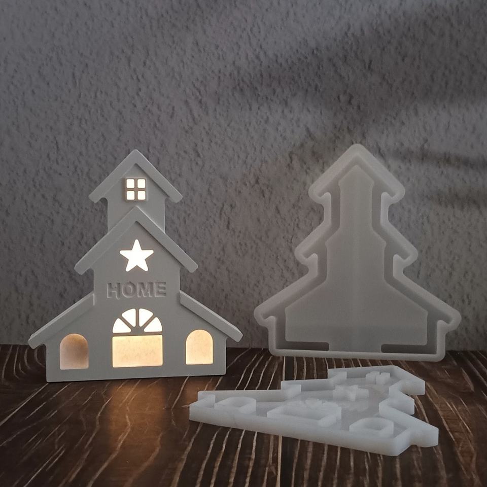 Handmade Eco-Friendly 3D Resin Art Storage Molds S1386 PC Ins Hollowed-Out House Ornaments Silicone Cake Tools for Bar Resin