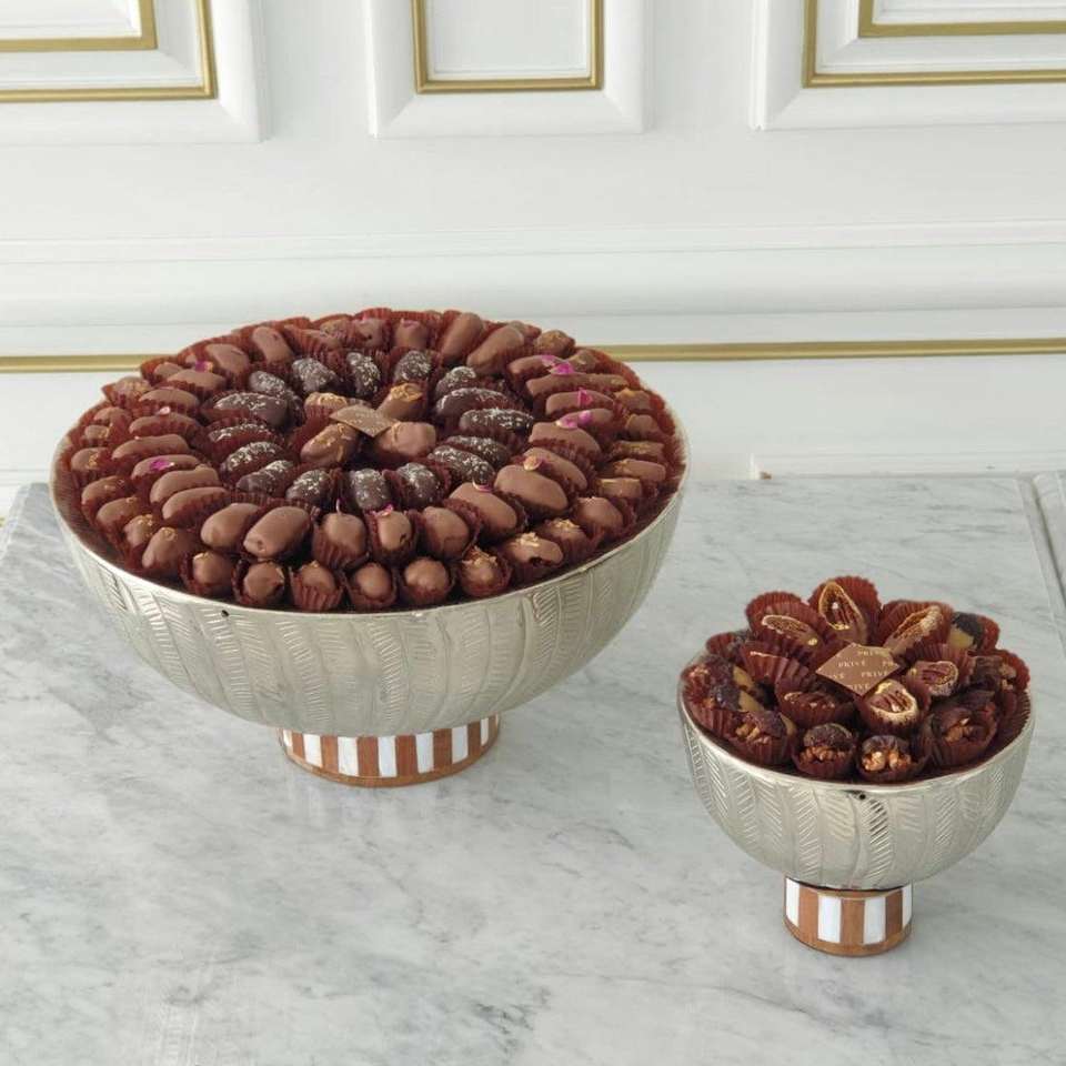ถาดช็อกโกแลตเหล็กทำมือ ปลอดสาร BPA เป็นมิตรกับสิ่งแวดล้อม พร้อมฝาครอบโลหะทนความร้อน ชามเสิร์ฟหรูหราทันสมัยสำหรับงานปาร์ตี้