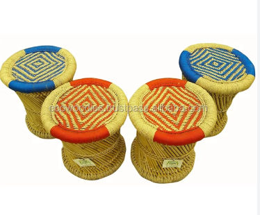 เก้าอี้ออตโตมันทำจากไม้ไผ่เป็นมิตรกับสิ่งแวดล้อมทำด้วยมือที่วางเท้าทำจากไม้ต่ำพร้อมผ้าสำหรับคอนโซลที่นั่งในอพาร์ตเมนต์