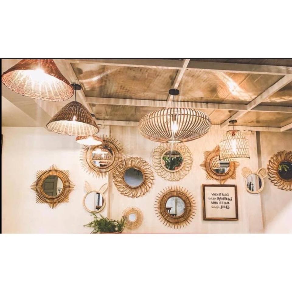 กระจกหญ้าทะเลสีเบจเป็นมิตรกับสิ่งแวดล้อมแฮนด์เมดพร้อมที่จับสําหรับตกแต่งบ้านผลิตในเวียดนาม