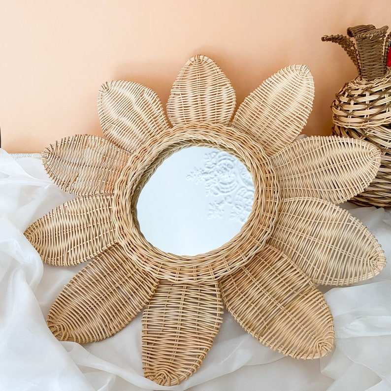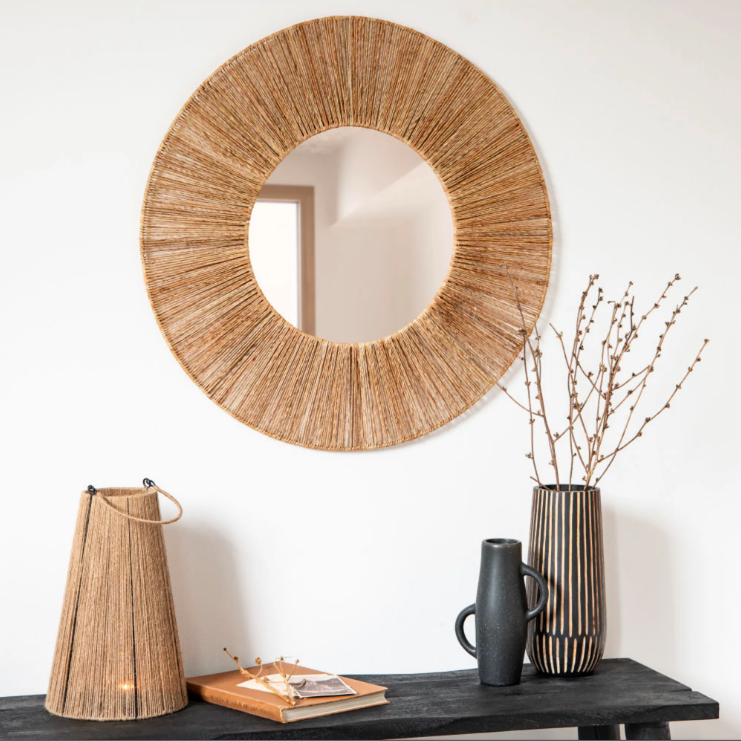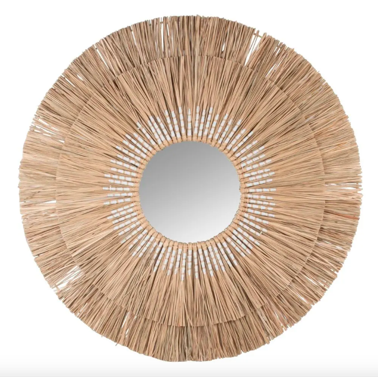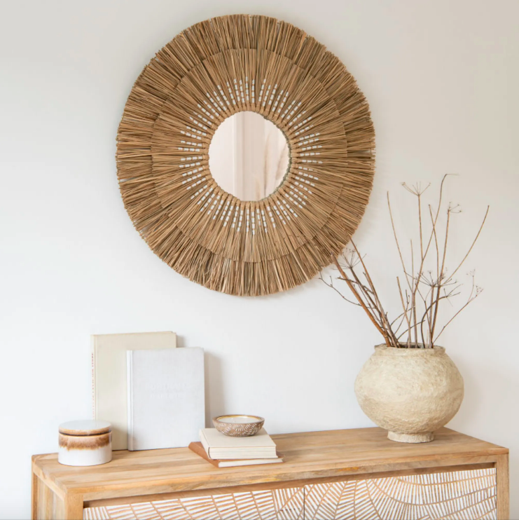 กระจกทำด้วยมือในหญ้าทะเลสีเบจ
