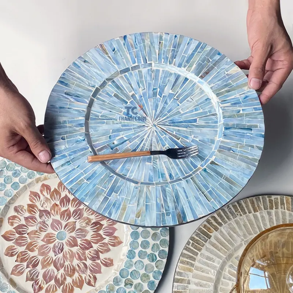 แผ่นรองจานทำมือแบบโบฮีเมียน ตกแต่งด้วยมุกธรรมชาติ เป็นมิตรกับสิ่งแวดล้อม ใช้เป็นของตกแต่งโต๊ะ จานใส่ผลไม้ หรือชามใส่ของ