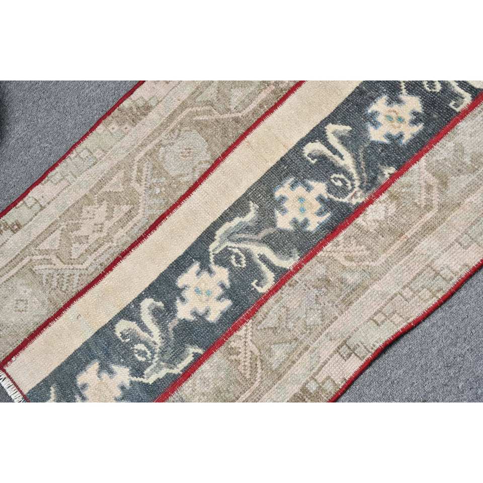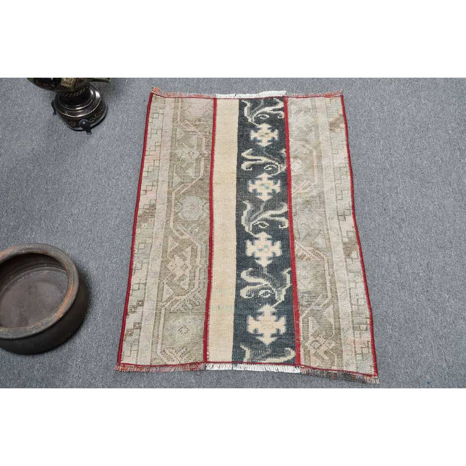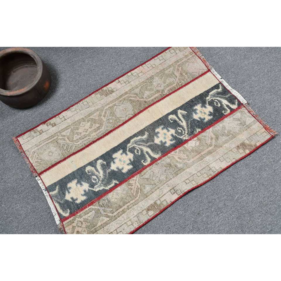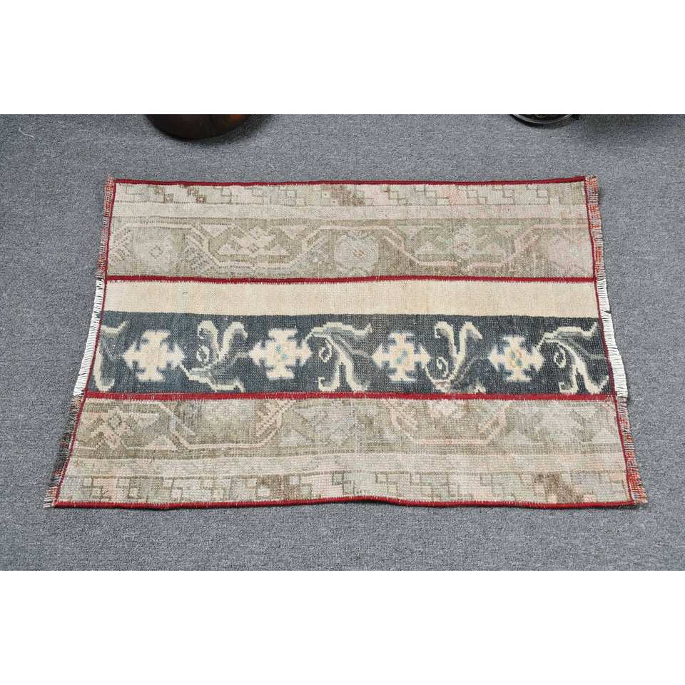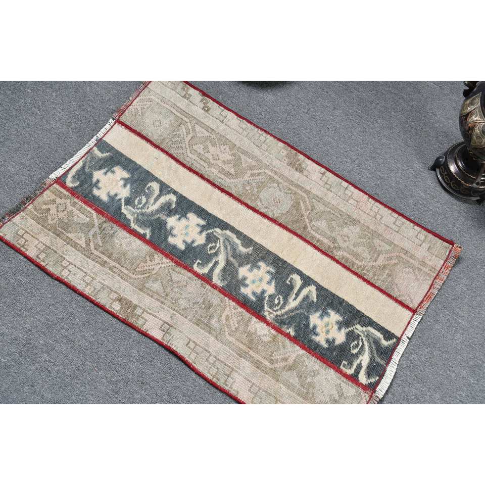 พรมขนแกะสไตล์วินเทจเป็นมิตรต่อสิ่งแวดล้อมทำด้วยมือ2x2.8ft สีเบจสีฟ้าตุรกีดีไซน์เย็บปะติดปะต่อกันชุดกองกลางด้านหลังทำจากยาง