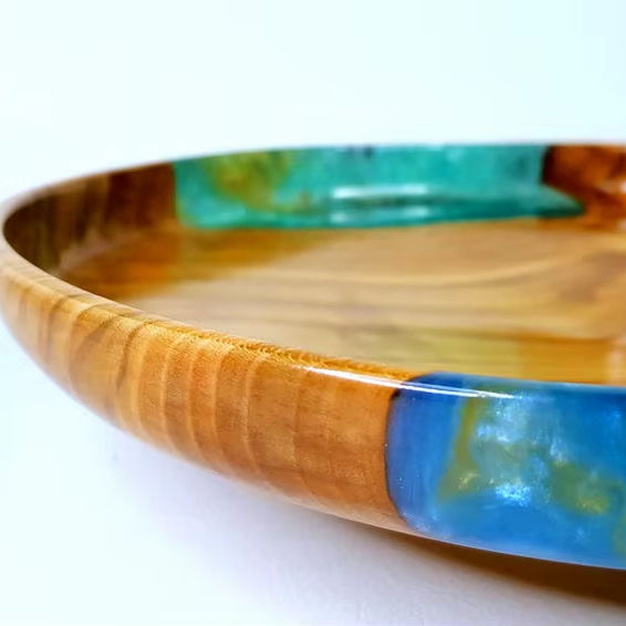 ชามไม้ทรงกลมแบบคลาสสิก ทำมือ เป็นมิตรกับสิ่งแวดล้อม พร้อมชามใส่ของตกแต่งด้วยอีพ็อกซี่เรซิ่น และจานรองแหวน
