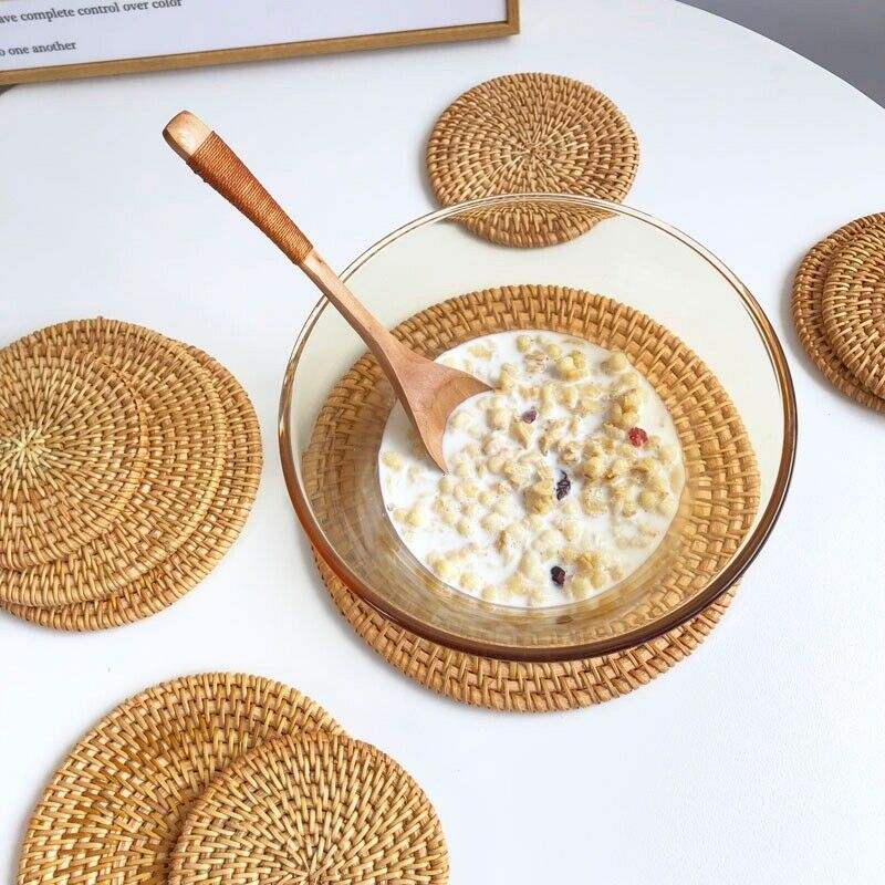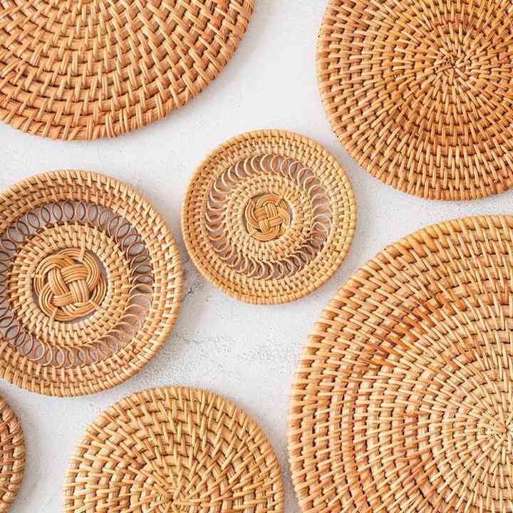 ที่รองจานทำจากหวายเวียดนามสไตล์คลาสสิกเป็นมิตรกับสิ่งแวดล้อมทำด้วยมือถาดรองจานที่วางถ้วยชาที่วางหม้อถ้วย