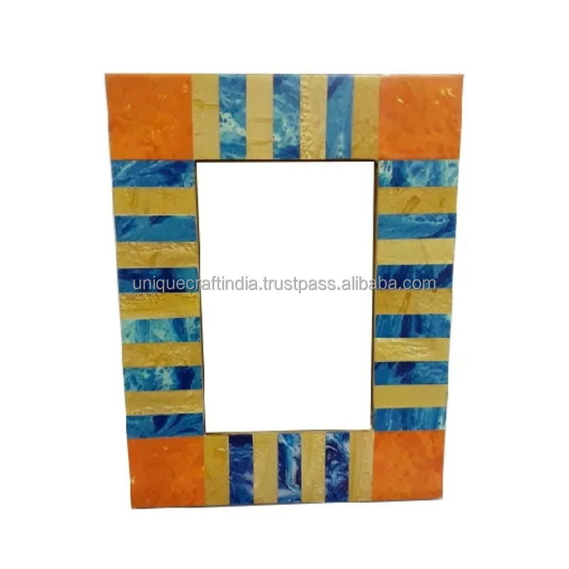 กรอบรูปไม้ฝังเรซิ่นลายตารางสีเขียว ทำมือ เป็นมิตรกับสิ่งแวดล้อม ทนทาน ดีไซน์เรขาคณิตทันสมัย เหมาะสำหรับตั้งโต๊ะ